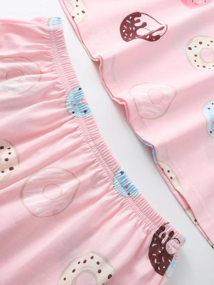 اكتشفي راحة وأناقة بيجامة حمالات بطباعة دونات، مشهورة من القطن الناعم مع لمسة من الليكرا لمرونة الناشئة. خامة قماش ناعمة على الجلد ومناسبة لفصل الصيف، مع طباعة دونات مميزة وممتلئة طابعًا عصريًا وجذابًا.