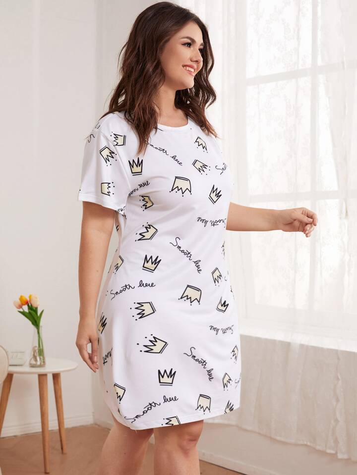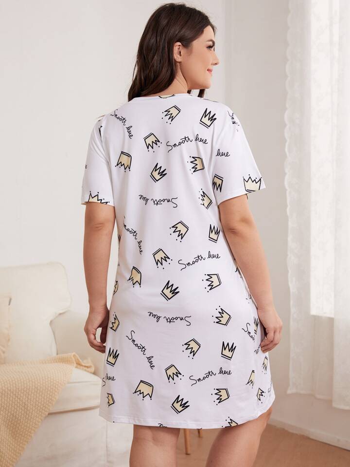 Nightdress with a graphic of a phrase and a crown, in plus size